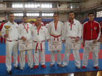 Treneri karate kluba Jedinstvo u društvu velikog trenera i atletičara Brane Radovića i prvaka države u maratonu prof. Ivana.