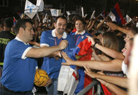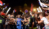 Uz rodbinu i prijatelje dočekali su navijači sa zastavama i drugim nacionalnim obeležjima, trubači, brojni novinari, kao i predsednik Srbije Tomislav Nikolić i ministarka sporta Alisa Marić.
