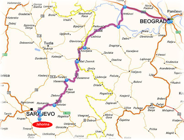 Udaljenost Jahorine od pojedinih gradova: